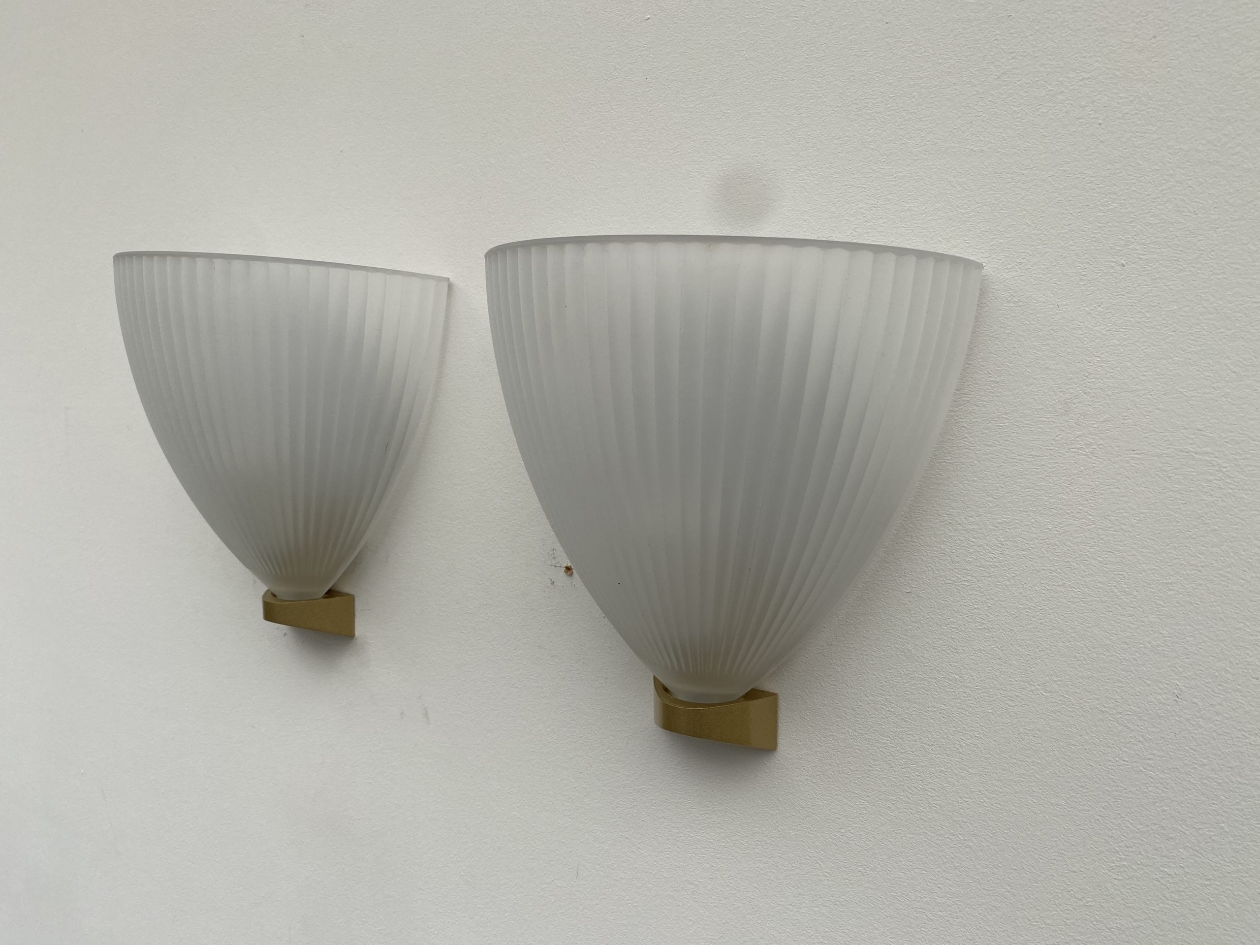 Luciltalia wandlamp Stresa. set van 2 stuks. Mat glas met messingkleurig kunststof armatuur. Het kunststof armatuur is gemakkelijk in een andere kleur te spuiten. bv wit, zwart of zilver.
