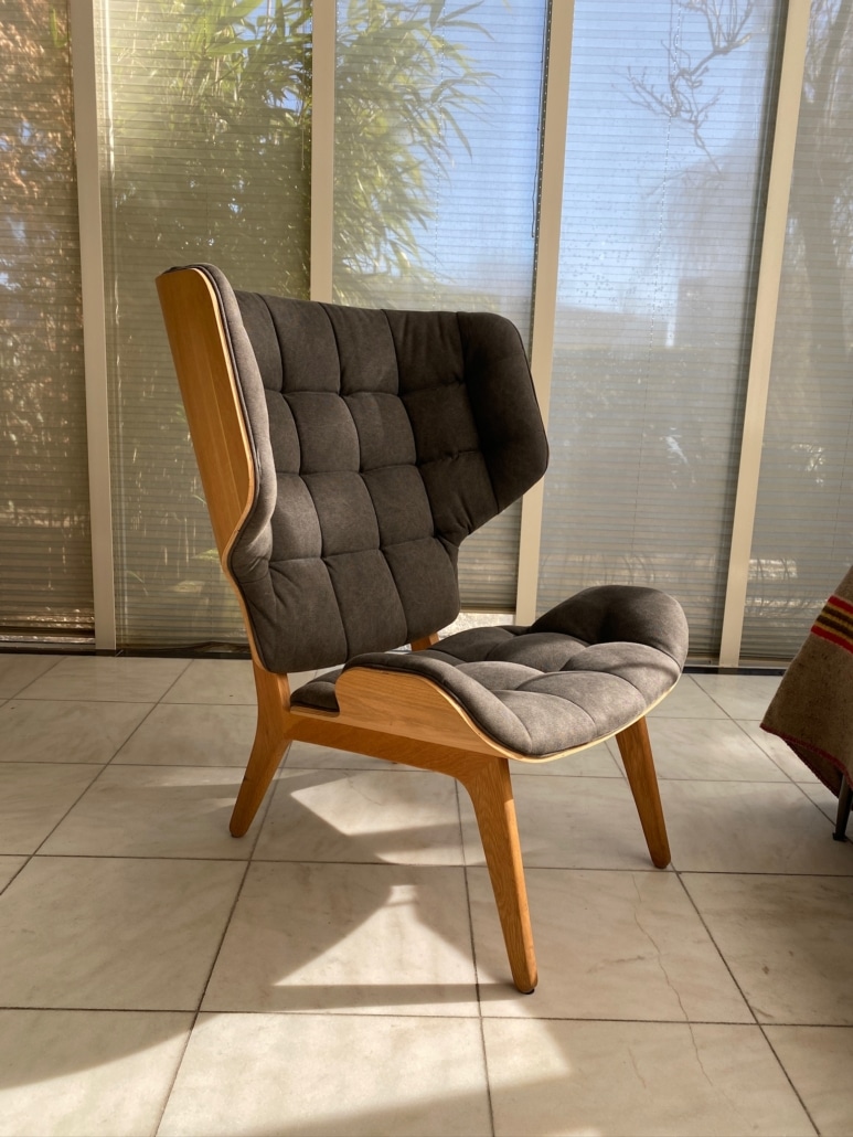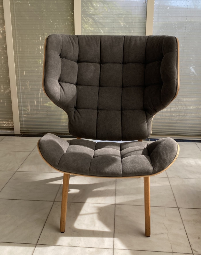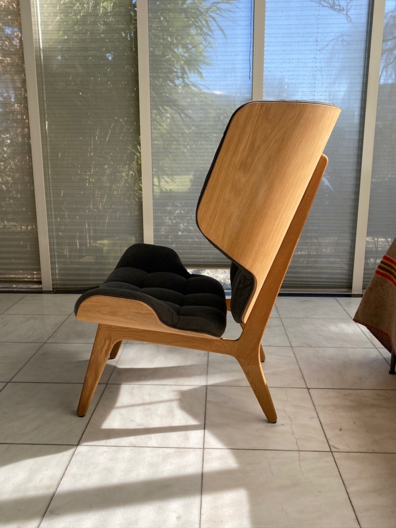 Iconische fauteuil van het jonge Scandinavische design merk Norr11. Met de blond eiken buitenkant en de stonewashed bekleding aan de binnenkant laat deze blikvanger zich gemakkelijk combineren in diverse interieurs.